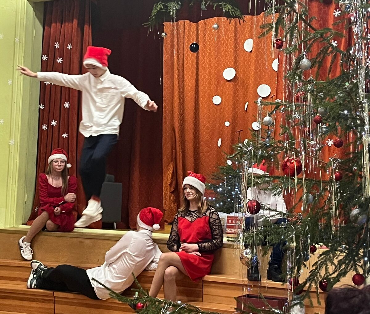 Mācību gada nogalē, 18. decembrī, Atašienes skolā notika svētku koncerts “Ziemassvētku gaismā” un pēc tā bija ieradusies pasaku laumiņa, lai iepazītos ar dažādu pasaku varoņiem un atrastu savu vietu pasaku jūklī. Laumiņai bija iespēja iejusties dažādās pasakās – “Vecīša cimdiņš”, “Vinnijs Pūks”, “Brēmenes muzikanti”. “Sniegbaltīte un septiņi rūķīši”, kā arī “Sarkangalvīte un vilks”. Pasākuma beigās ieradās Ziemassvētku vecītis ar sagādātajām dāvanām par labi padarītiem darbiem.