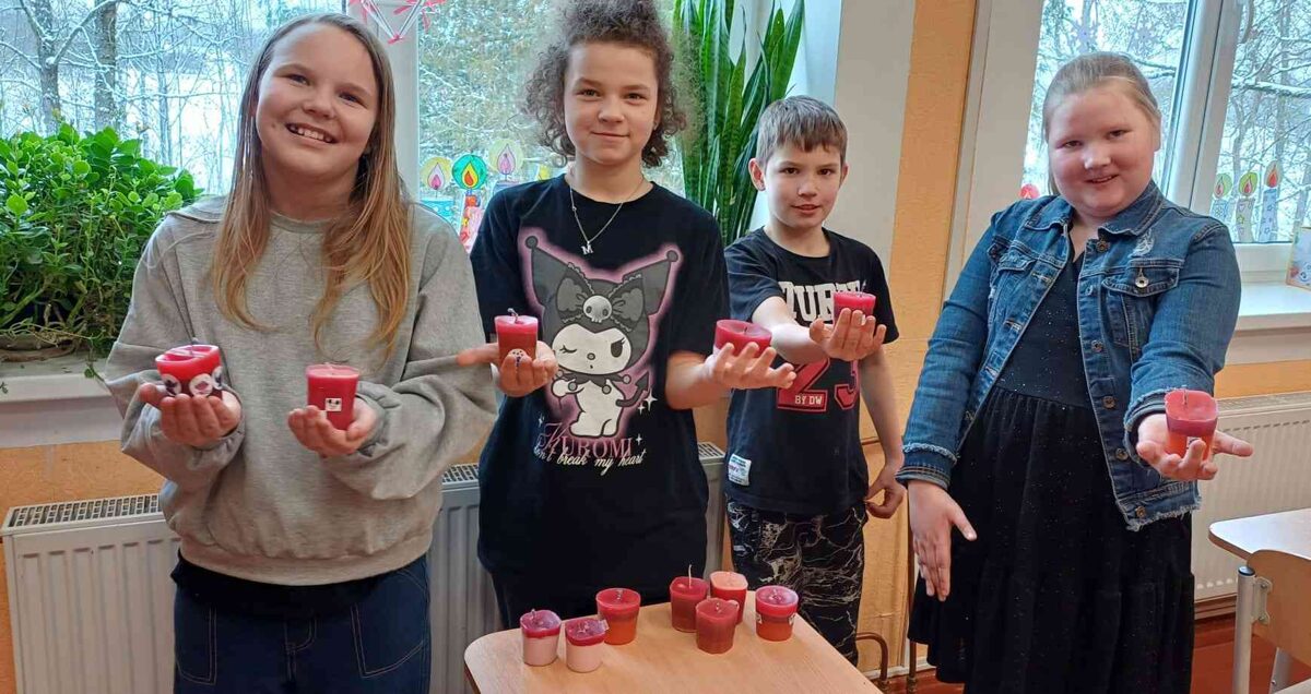 Baltā ziema apklājusi laukus ar sniegu un parāda savu varenumu. Lai būtu gaiši un silti mūsu mājās, sākumskolas bērni ķērās pie darba un izlēja savas svecītes.